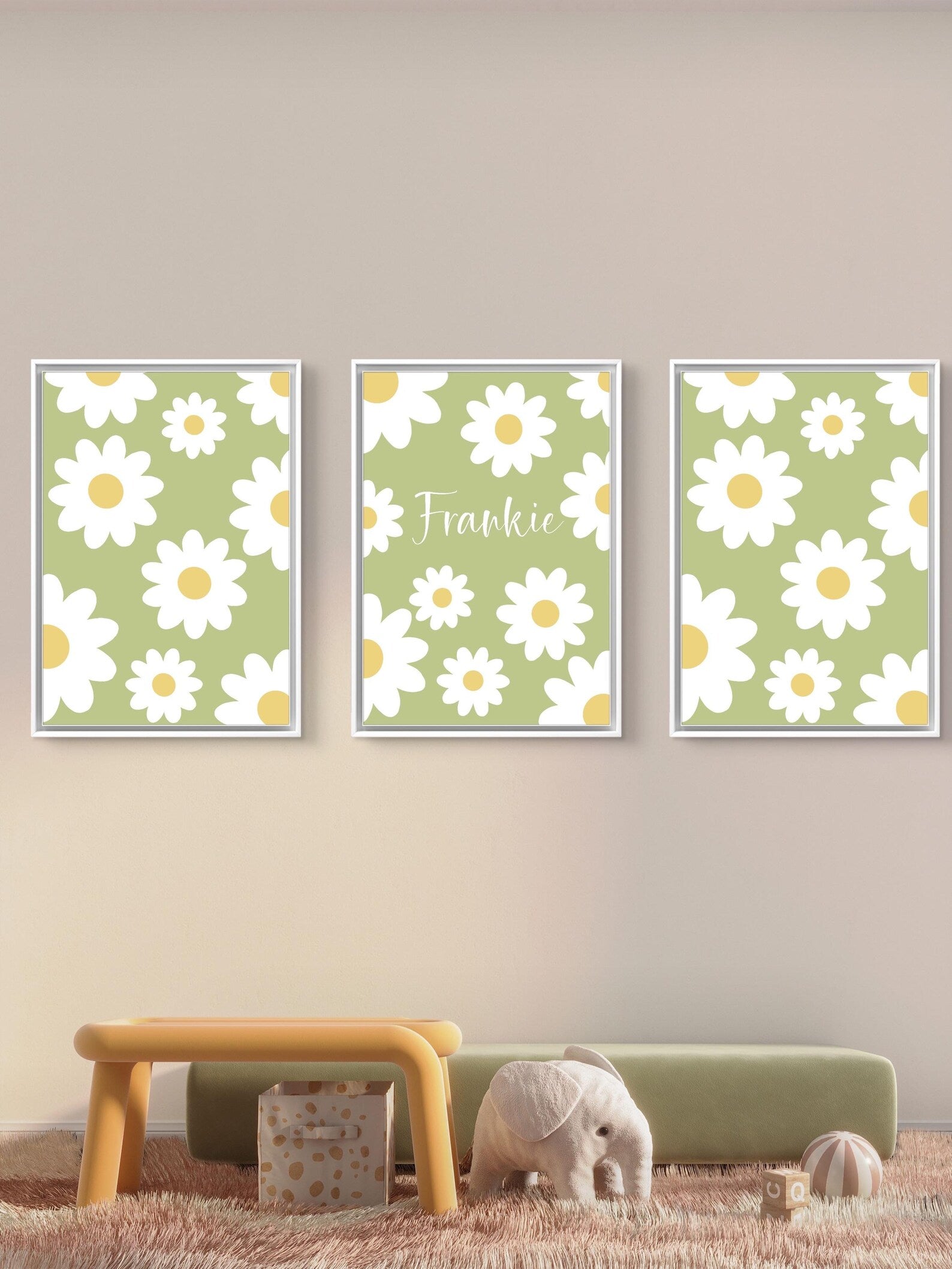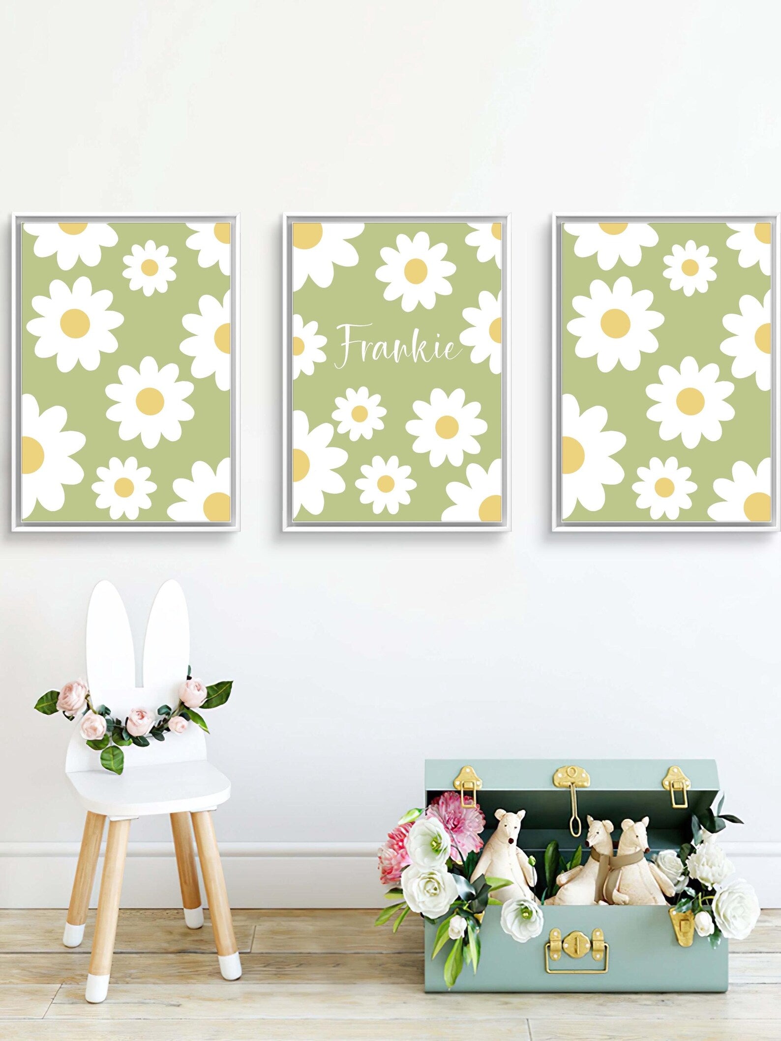 Personalised floral trio name prints| custom flowery wall art in 4 colour choices